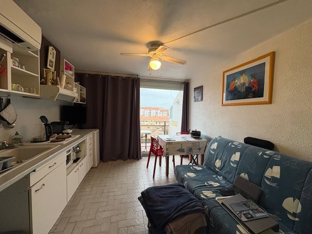 Résidence fermée avec piscine proche plage Nord, 2 pièces de 25,75 m2 avec grand espace cuisine aménagée, loggia ouverte exposition Ouest. Entrée, chambre, salle d'eau et WC séparé. Parking en sous-sol.