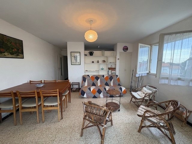 Nouveau bien à la vente ! A rafraichir mais avec un bon potentiel ! Belle surface de 54 m2, lumineux ! Secteur BOUCANET, 2 chambres dont 1 avec terrasse, grand séjour avec loggia exposition SUD, vue mer éloignée.